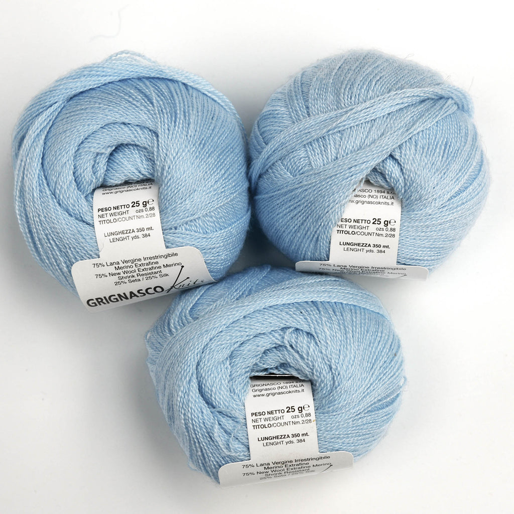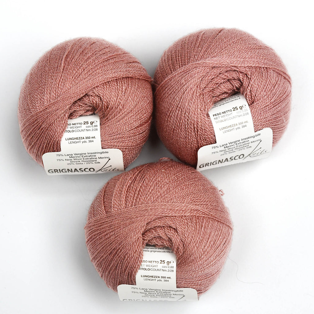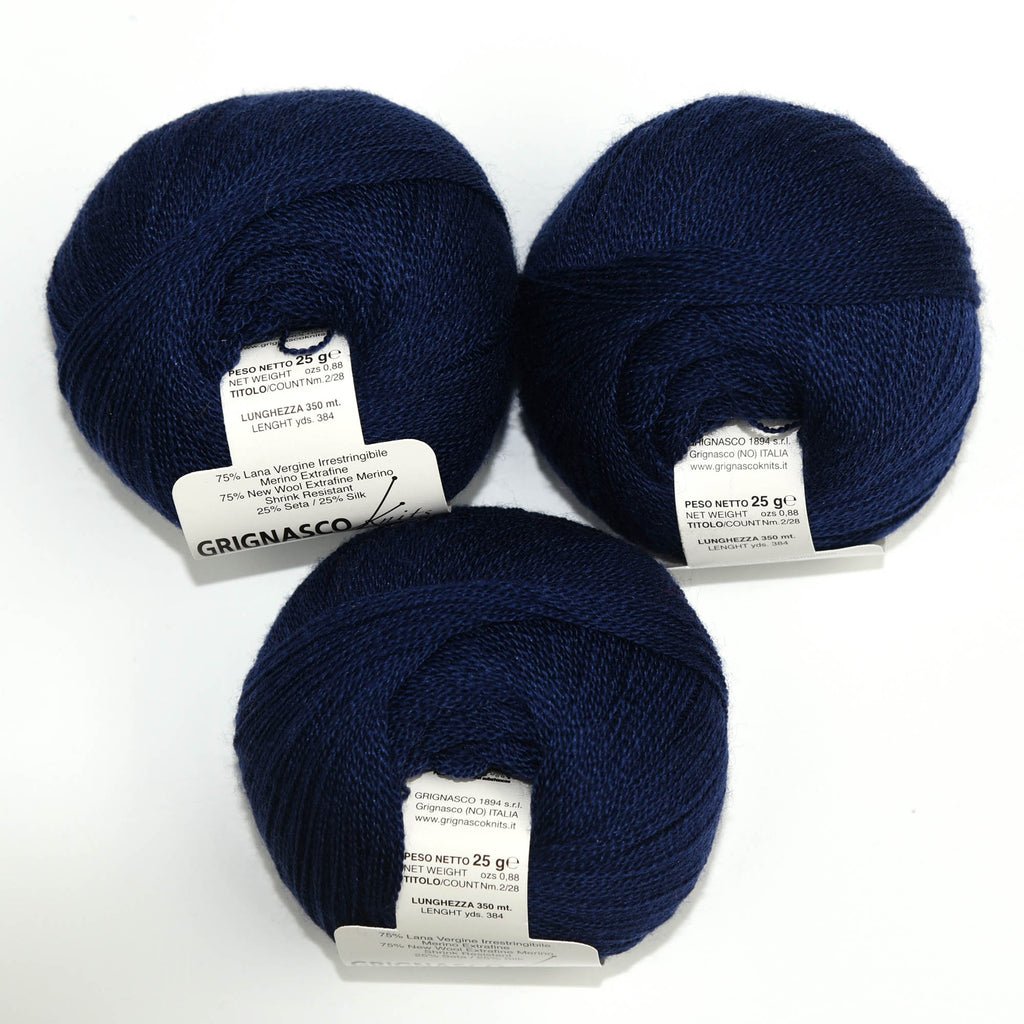 Grignasco Knits "MerinoSilk25" Yarn - Silk / Extrafine Merino Wool, Cobweb Weight, 384 yards - Various Colors