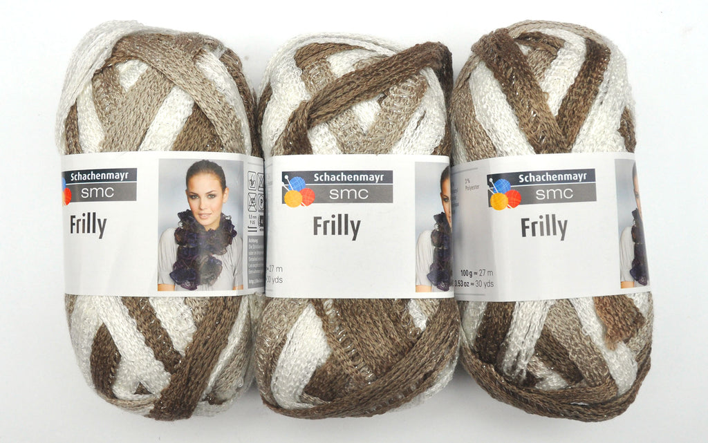 Schachenmayr "Frilly" Yarn - Acrylic / Polyester Novelty Yarn, 30 yards - Brown & White