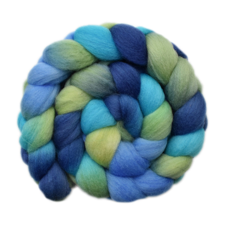 This roving is in shades of blue, purple and green.