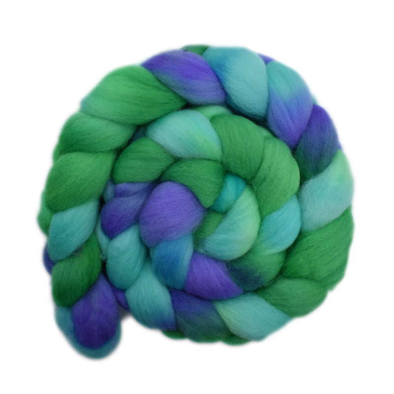 This roving is a blend of South American wools, and has a semi-luster finish and a soft hand. The fiber diameter is 25 microns and the staple length about 3 inches.