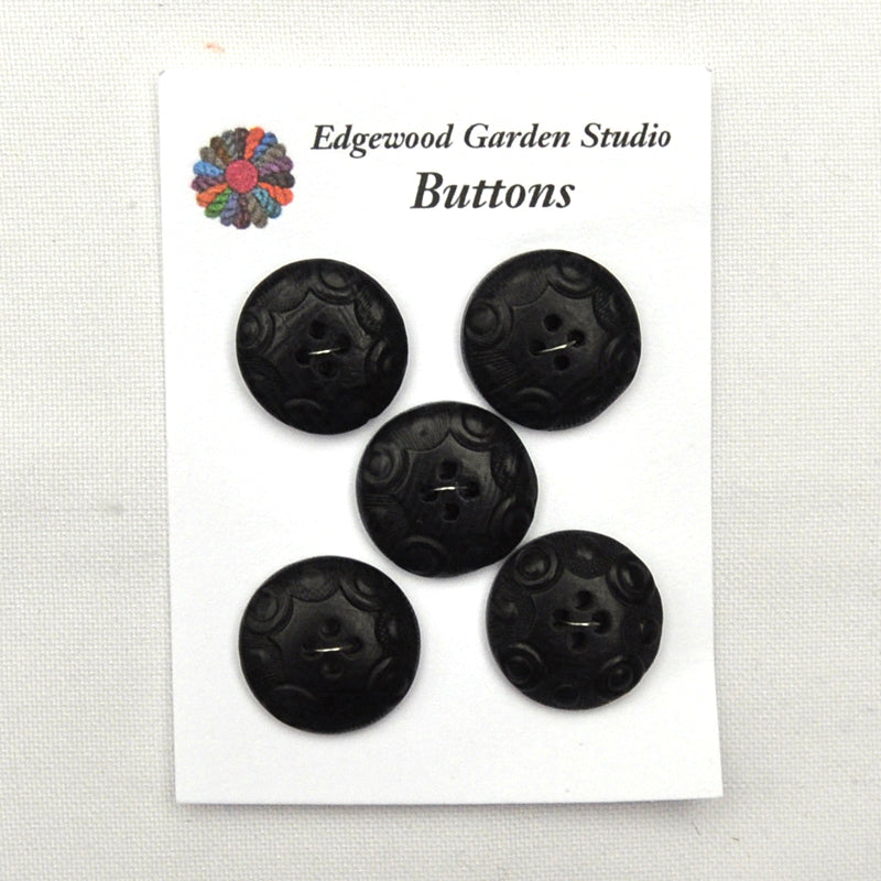 Black Buttons with Embossed Pattern - Set of 5