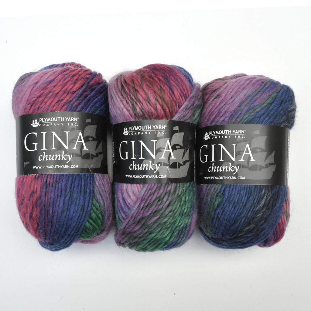 Plymouth "Gina Chunky" Yarn - Wool, Bulky Weight, 131 yards - Purple, Green & Red